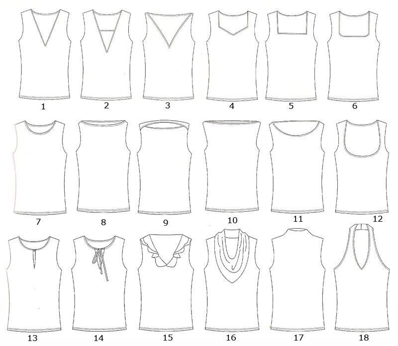 Это один из самых популярных вырезов. Для этого классического выреза подходят практически все ткани. Он применим ко многим предметам одежды.